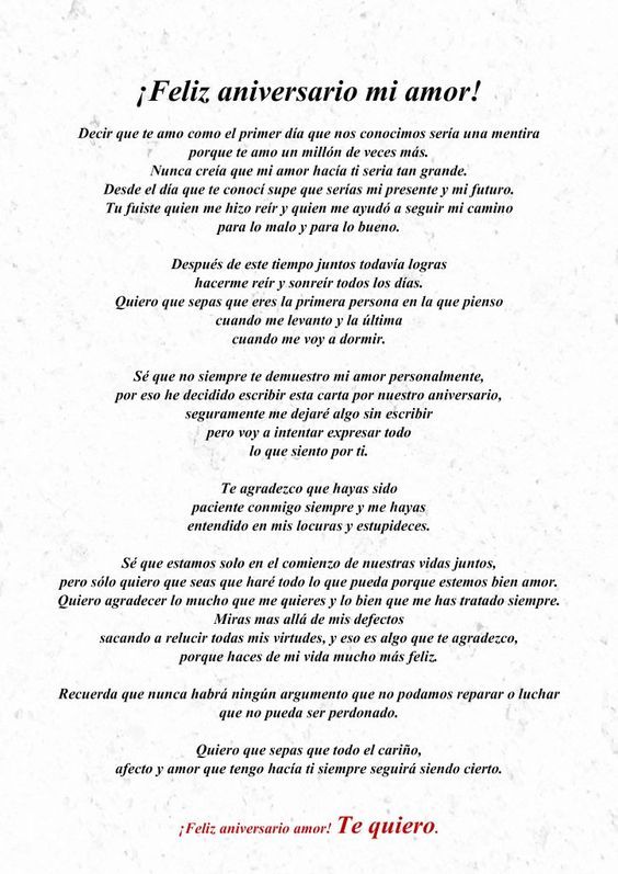 Hoy es nuestro aniversario y no puedo dejar pasar este día sin decirte cuánto te amo y lo agradecida que estoy por tenerte en mi vida. Desde el primer momento que te vi, supe que eras el indicado para mí, y a lo largo de estos años, has demostrado ser mi compañero de vida perfecto.